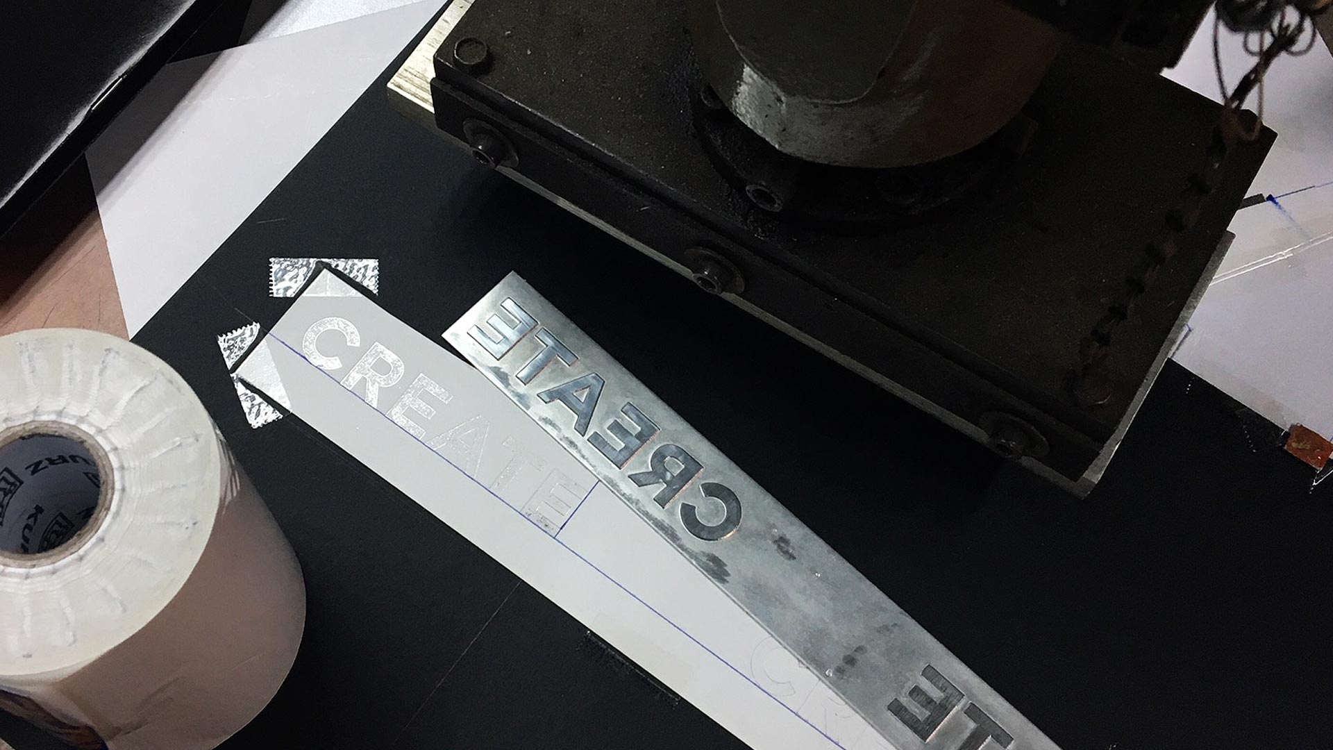在印刷過程中,即使是平面紙張也可以營造出立體的感覺,燙金的好處是可以增強立體感和手感。《就係香港》創刊號的主書和Recreate別冊的封面,都採用了燙金技術。後者的白色和啞黑色字用上自動燙金機去處理,因為燙上三層,所以即使是black on black設計( 黑色封面紙上燙上黑色題),字體亦顯得鮮明立體。