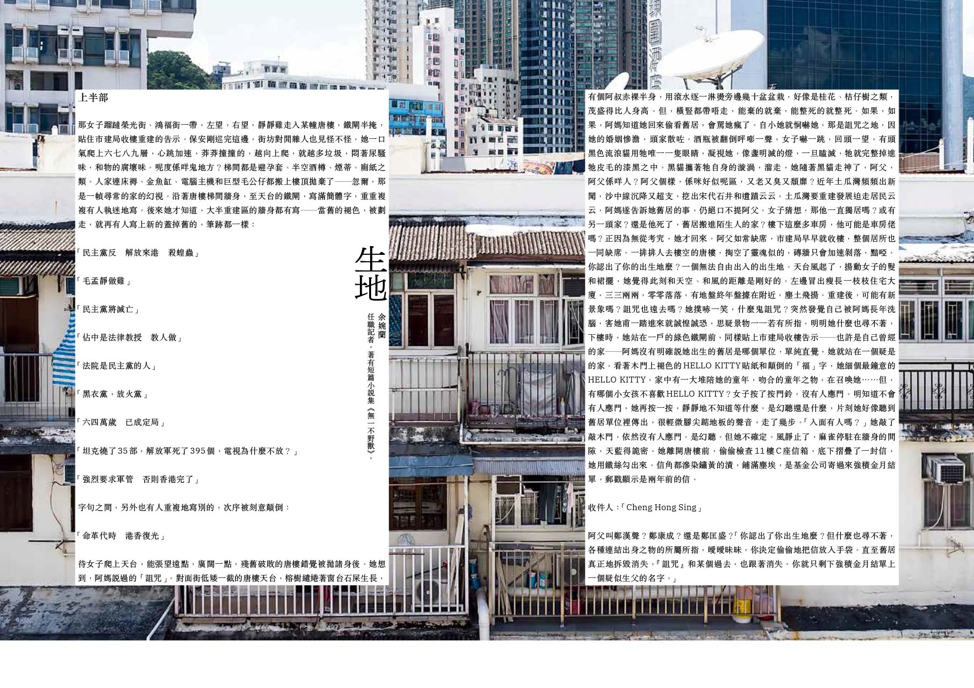 兩位同樣從事記者工作的新世代作家余婉蘭和趙曉彤,分別以土瓜灣益豐大廈和大嶼山東涌河作為背景,創作短篇小記,拉濶人對地方的想像。