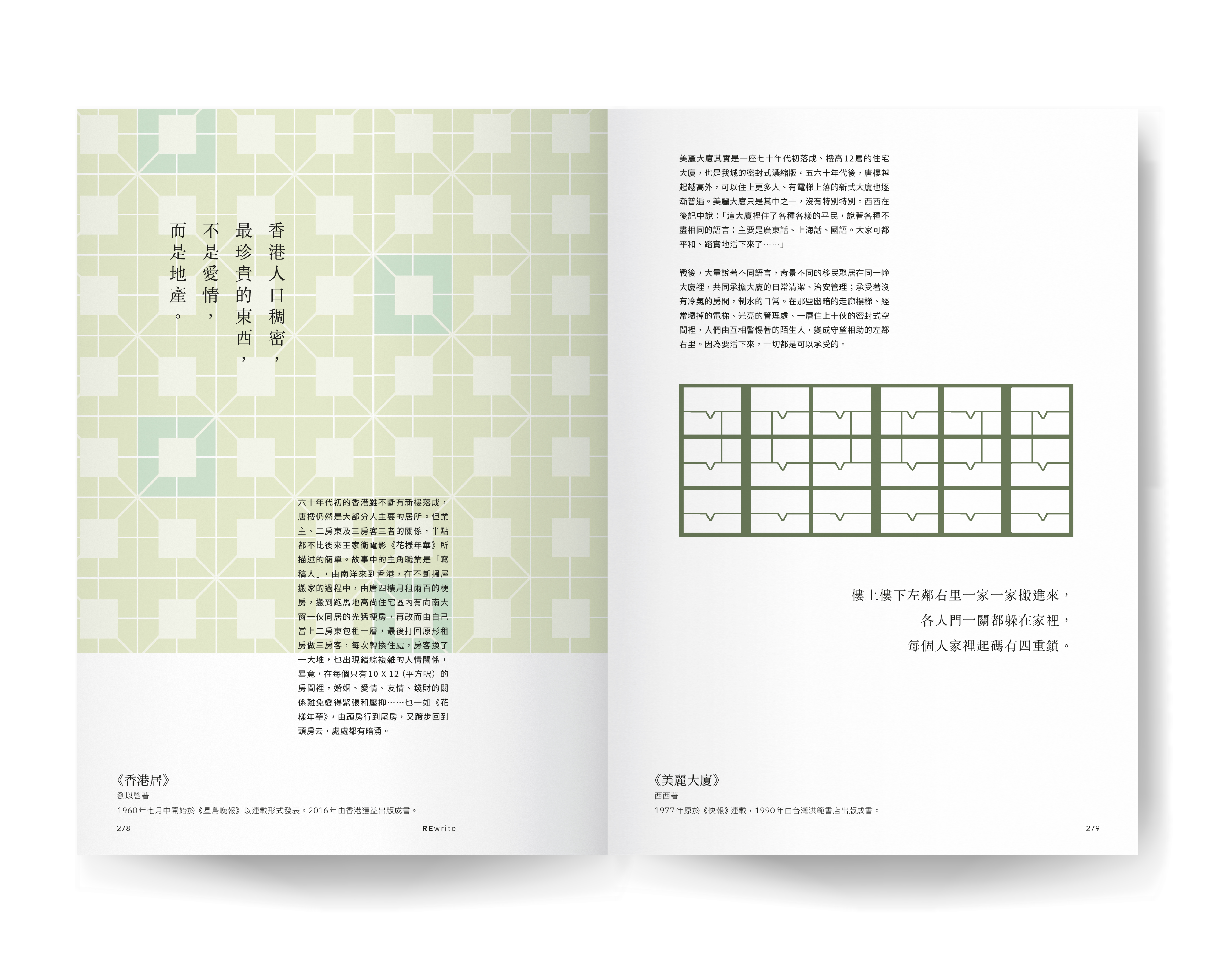 劉以鬯、西西、麥樹堅和林小龍,四部不同年代的作品,四種不同的居住空間,描繪出在香港各種密集的居住空間內,人和人的關係如何發生微妙的變化。