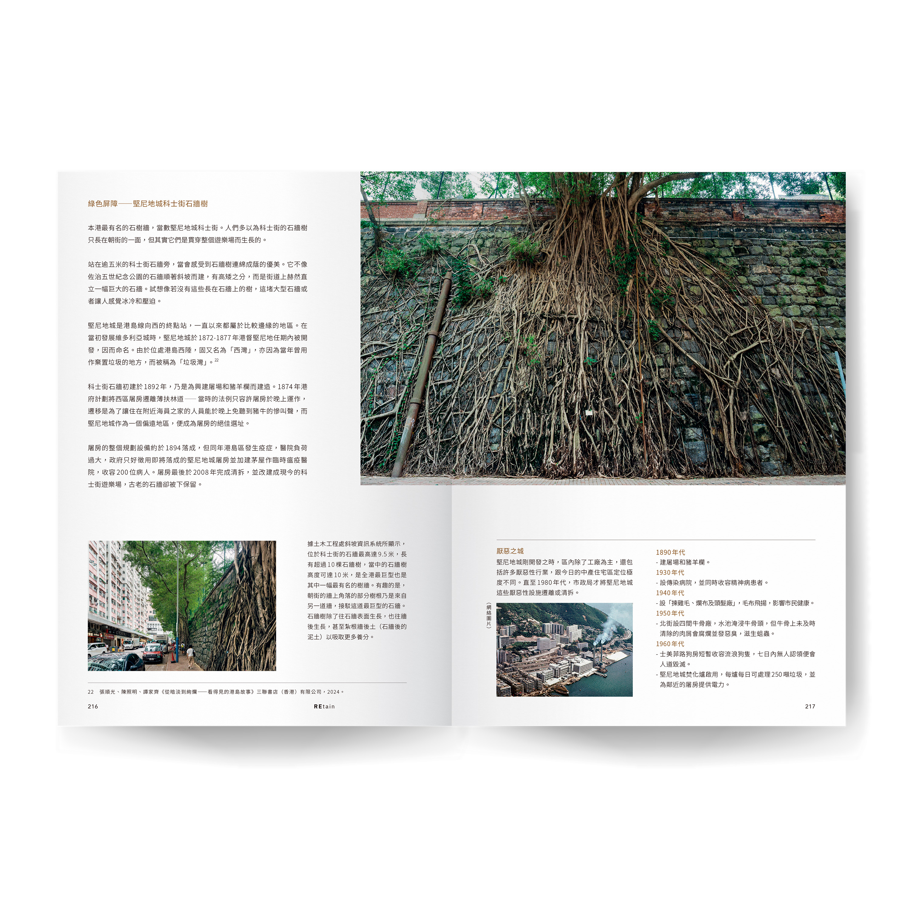 遊走於「山城」之稱的香港島,不時會遇到石牆樹蔓延在垂直石砌擋土牆表面,或者鑽入牆身的縫隙之間,展現出無比的生命力。香港的石牆形態多變,顯示了本地石匠及工程技術的特色和變化,甚至見證早期開闢「山城」的過程。另本地藝術家鄧啟耀,一直在作品中探討香港的城市景觀、展示景物背後有關殖民化、城市化,以及歷史事件對地方面貌造成的改變。今次藉著中環城隍街和灣仔東美花園的石牆樹,呈現自然和社區的連結。