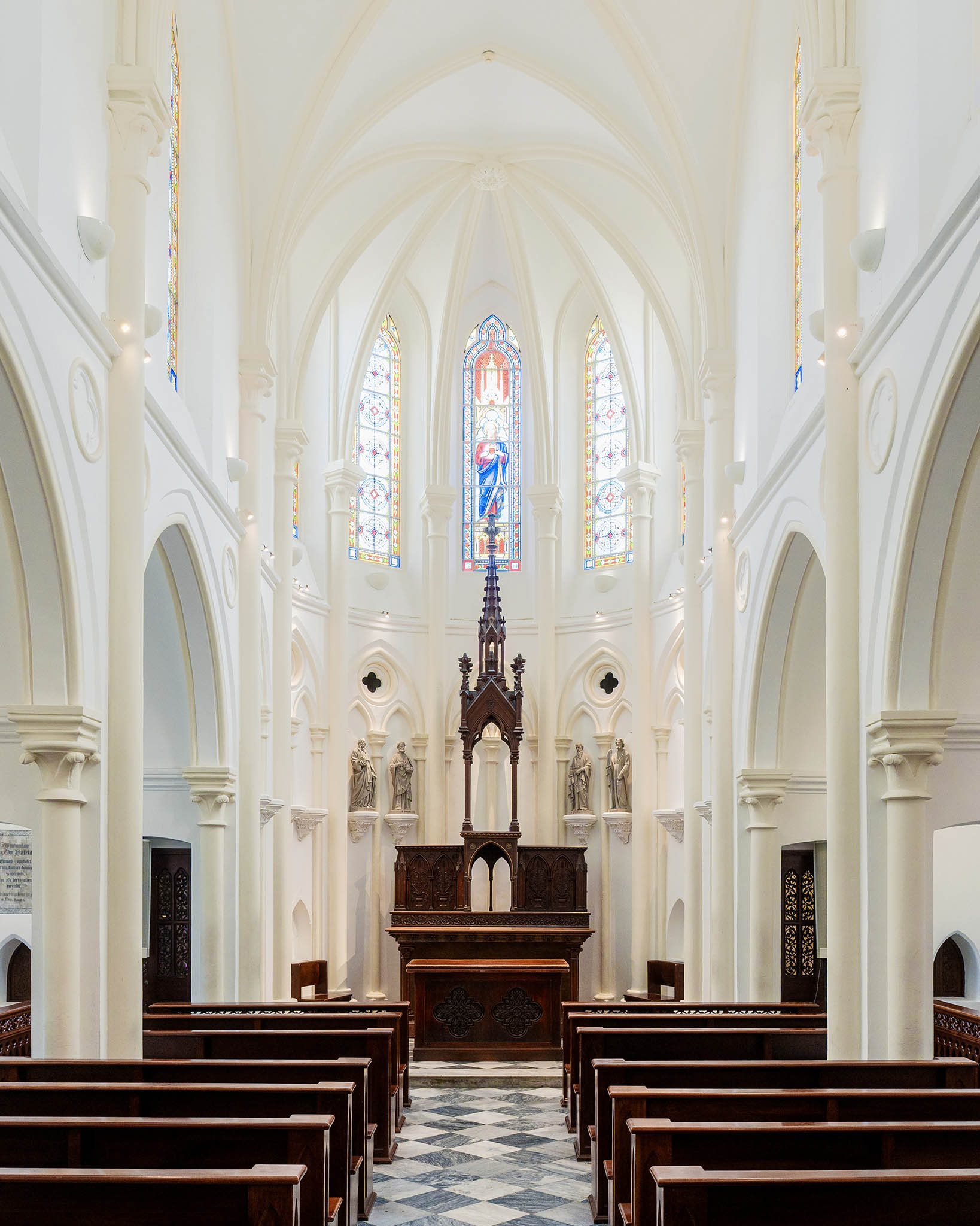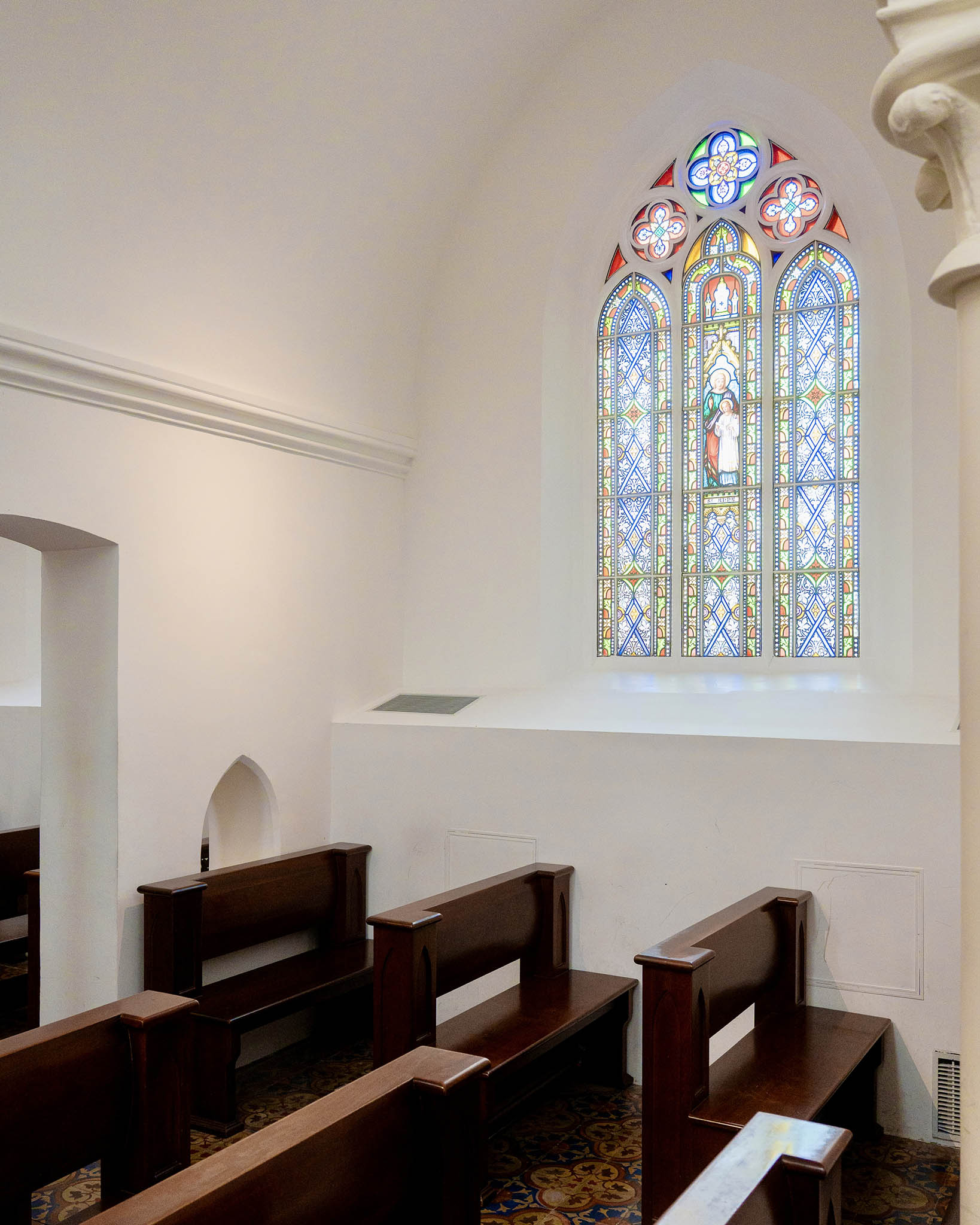 從地理位置來看,伯大尼修院不但遠離鬧市,自成一角,卻提供了一個舒適、清幽的休養環境。身處修院之中,人們不難想像昔日傳教士在這裡療養的光景——站在前廊,可以遠眺現時數碼港對開一帶的海景,更可以觀賞日落景色。修院內設有一座小教堂,從正門進入建築物範圍,來到長走廊到盡頭,便會看見教堂入口。教堂樓頂的拱形圓頂富有中世紀建築風格,旁邊則建有法式哥德風格石柱。小堂內設有小型祭壇、一排排木製跪椅以及聖像,四周均有長形彩繪玻璃裝飾,方便傳教士進行日常的禮拜與特殊儀式。若在日間到訪,更可以看見陽光折射玻璃的七彩光芒,映照在教堂拱形門廊、石柱上和法式地磚上,散發出濃厚的靈性色彩。