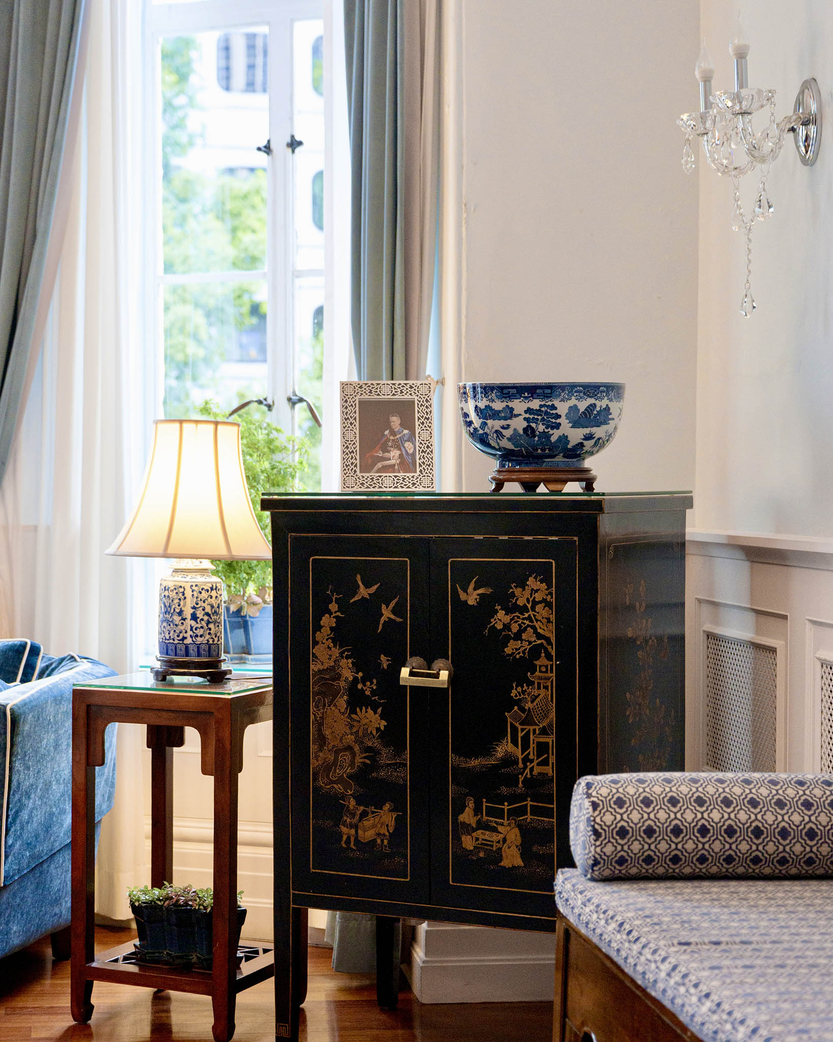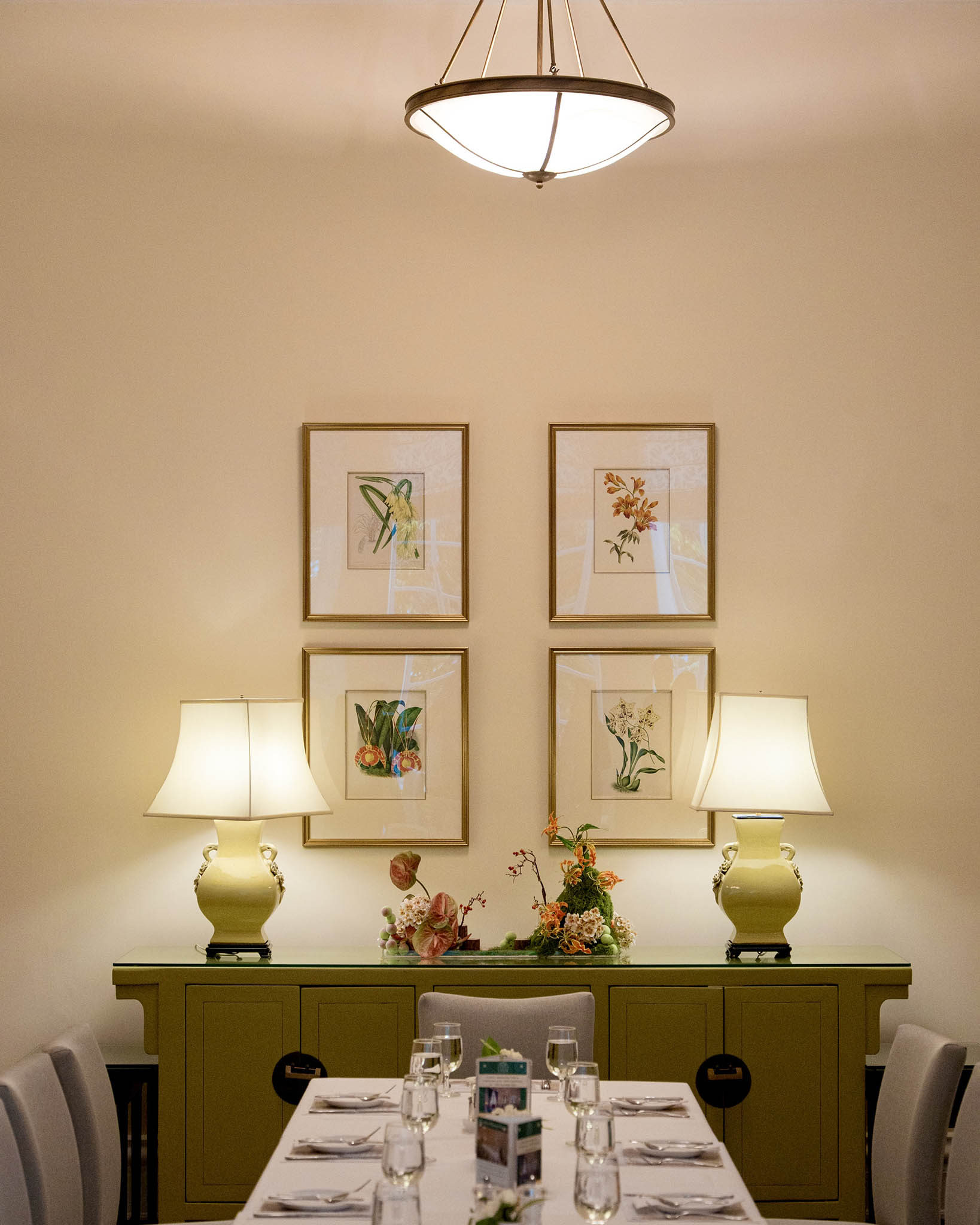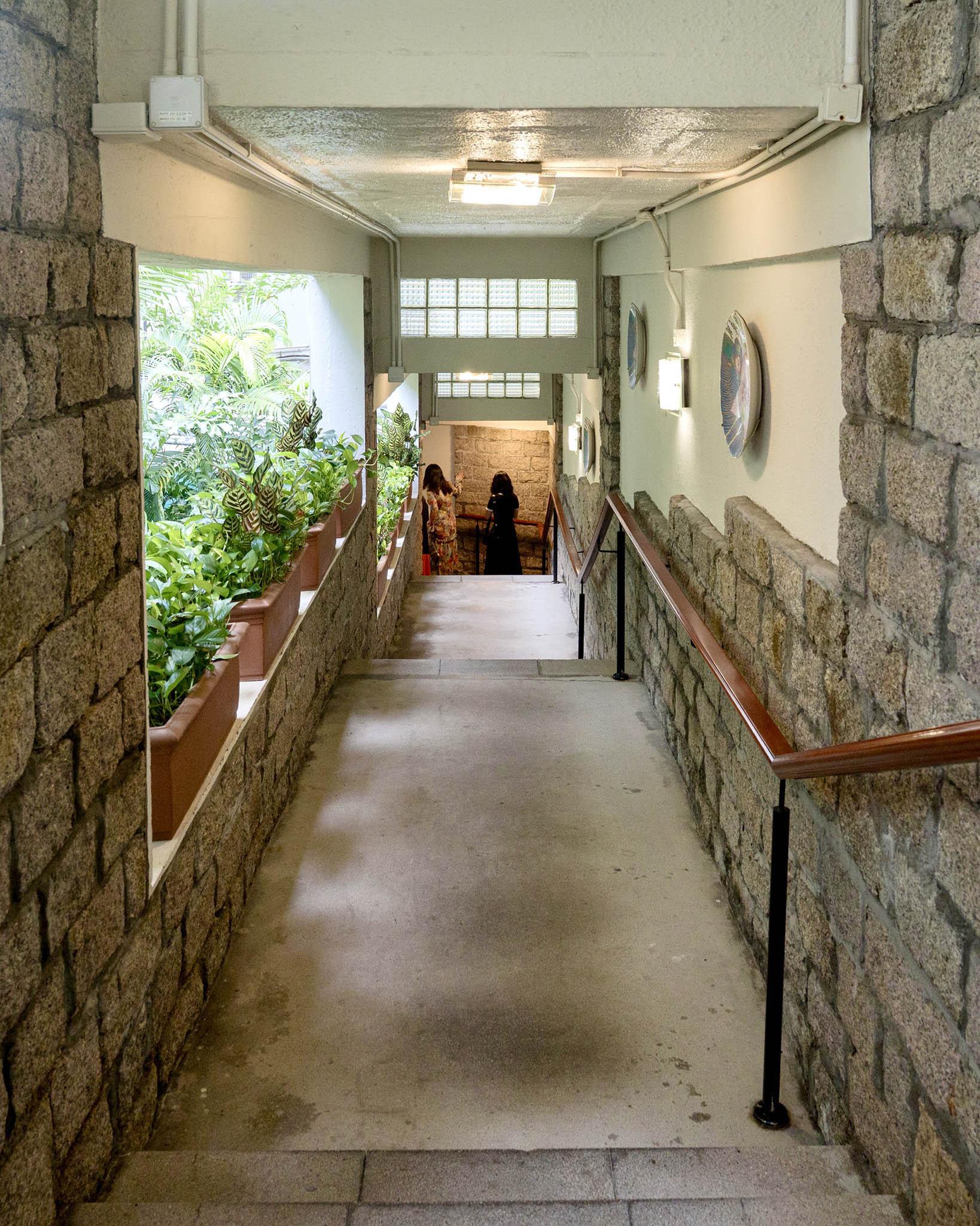 主樓的中西融合風格亦延續到內部空間——在休憩空間裡,擺放著中式茶几、枱燈及瓷器,與西式水晶吊燈和座椅相映成趣。餐廳有通道可直達樓上的宿舍範圍,也可通往花園、圖書館及芭蕾舞室。西式花園內種了芒果樹和雞蛋花樹,也有一些香港常見的花草樹木,瀰漫點點亞熱帶地區風情。
