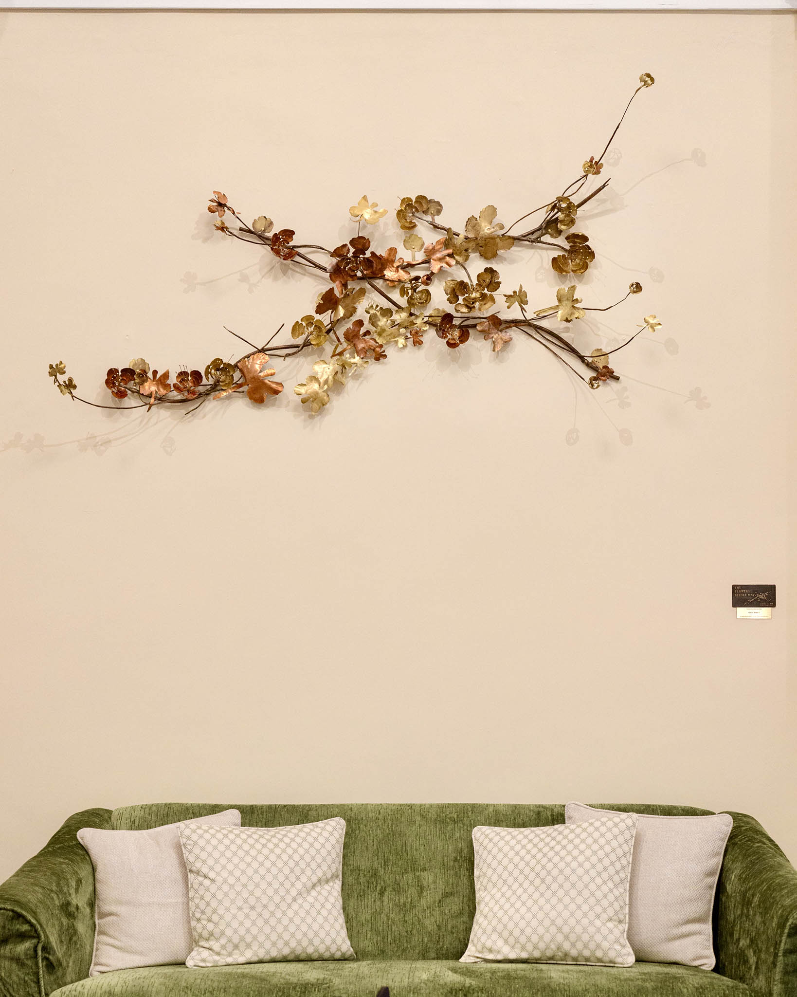 即將迎來109週年,婦女會邀請了抒銅 @imcoxper 兩位創辦人Nathan和Hazel,創作銅藝雕塑作為誌慶。Nathan和Hazel回想起,今年4月第一次到訪梅夫人婦女會時,巧遇花園裡的洋金鳳開花,一束束鮮橙紅色小花朵,風吹過時,仿似隨風跳舞,建築物雖已超過百年歷史,卻讓他們有一種充滿活力朝氣的印象,因而便以洋金鳳作靈感,將花與金屬結合,運用不同顏色的銅質材料和工藝,以「the dancing butterfly」為主題,串連成這個女銅製牆面雕塑作品,象徵不同文化背景的女性在此地連結,又以女性的身份去關懷不同社群,延續梅夫人的精神。