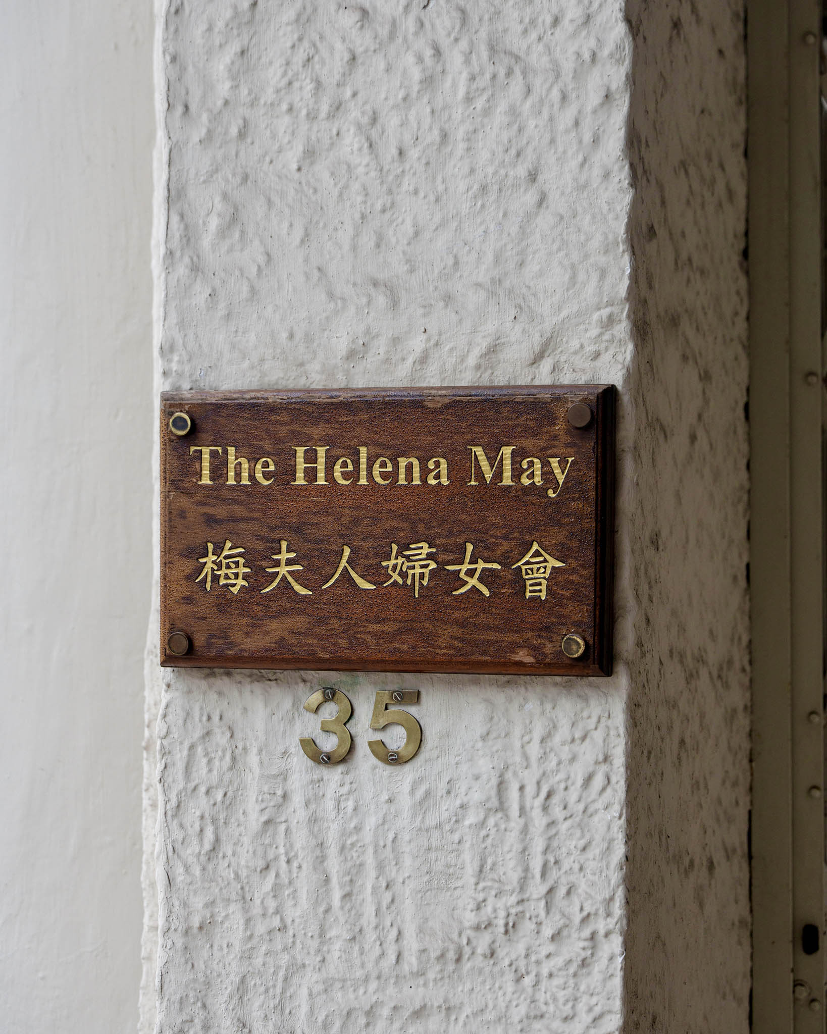 梅夫人婦女會沿用了愛德華古典復興建築風格,呈凹字形的主樓入口處,弧形拱門上不但刻有「The Helena May」字樣,兩旁又有花形雕刻。兩條對稱的圓柱,以及建築頂層的窗戶之間,亦刻有不同的流蘇裝飾。地面及第二層分別建有圓拱形和弧形前廊,頂層則是開放式設計,寬闊的走廊帶來了良好的採光效果。而當你細心留意,會發現建築物藴藏了一些中式元素——樓頂運用了中式屋檐設計,且以瓦片建造,方便下雨時疏通雨水;步入接待處時,則會看見玻璃門門頂的圓形窗花裝飾,參考了中式銅錢設計。會所一般不對外開放,唯有會員及住客才有機會接觸建築物內部的裝潢設施,但大樓外部依然保留二十世紀初的歷史原貌,即使位於繁忙的車道旁邊,在半山上依然突出。