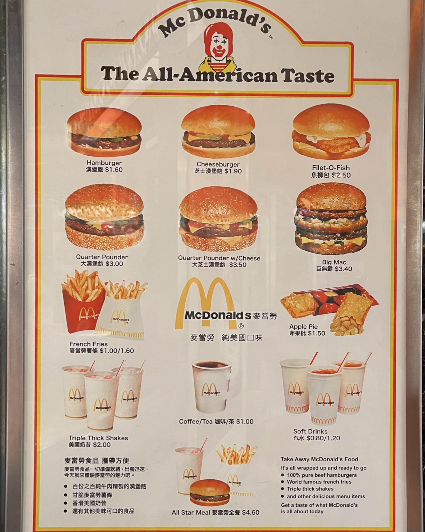 麥當勞作為「過江龍」,在銅鑼灣百德新街四號地下(現址為松本清銅鑼灣旗艦店地下位置)開業當時,海報和傳單均以「純美國口味」和「經濟抵食」作口號,向大眾宣傳美式快餐飲食文化。麥當勞的快餐生產模式,與本地茶餐廳的家庭或小本經營模式顯然不同,店面裝潢和進食空間都營造出輕鬆活潑的美式餐廳氣氛,對於成年人、年輕人或孩童,感覺都十分新鮮。而當時港式快餐店的午市套餐價錢平均約$3-5元,麥當勞全餐,包括一個漢堡包、一包薯條和一杯奶昔,售價為4.6港元,雖然是外國食物,但價錢相對較易為大眾接受,因而在開業當天便吸引大量市民光顧,希望一嚐「原汁原味」的西式快餐。