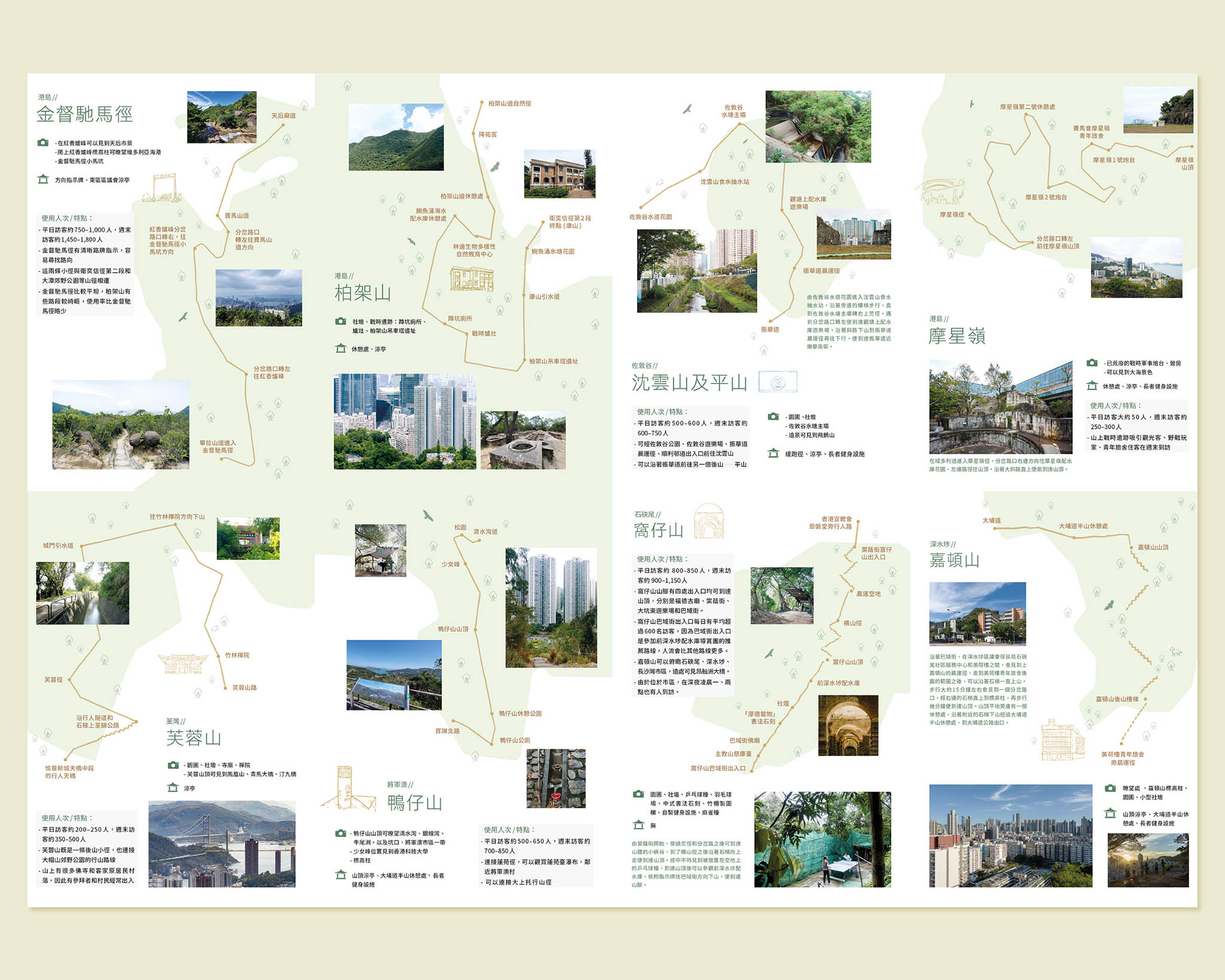 這些分佈於不同地區的後山小徑(Backyard Trails),大部分位於市區與郊野之間的綠化帶,緊鄰密集住宅區,卻因為入口隱密而常常被忽略。但熟悉的居民、行山者和退休人士常在此散步、聊天、鍛鍊、乘涼,甚至晾衣曬陳皮,成為獨特的社交與休憩場所,為周邊密集的社區帶來喘息空間,有助居民舒緩生活壓力。
