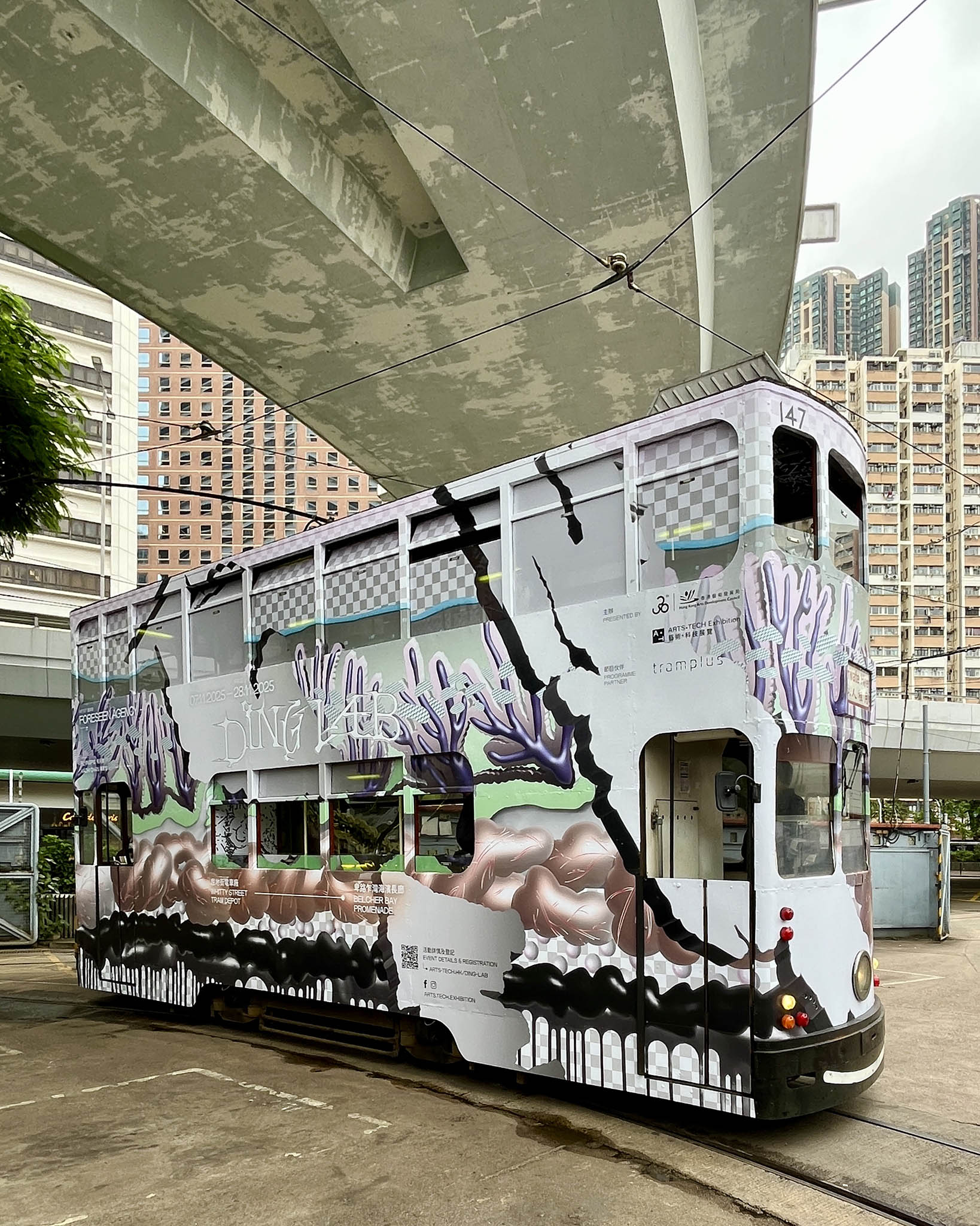 近日本地藝術家組合Foreseen Agency(飛天豬及陳家智) @foreseen_agency ,透過「Ding Lab」藝術項目,創作出一系列有關電車與城市,結合人工智能、LED裝置、實時影像、雕塑及互動裝置的作品,當中設於卑路乍灣海濱長廊的樹脂雕塑《擱淺物質》,便是模擬昔日曾經被風捲起,與電車相碰的海浪。今天的岸邊不會再有電車駛過,浪花即使拍打到卑路乍灣,也再無機會接觸電車,只能靜靜擱淺於岸邊。