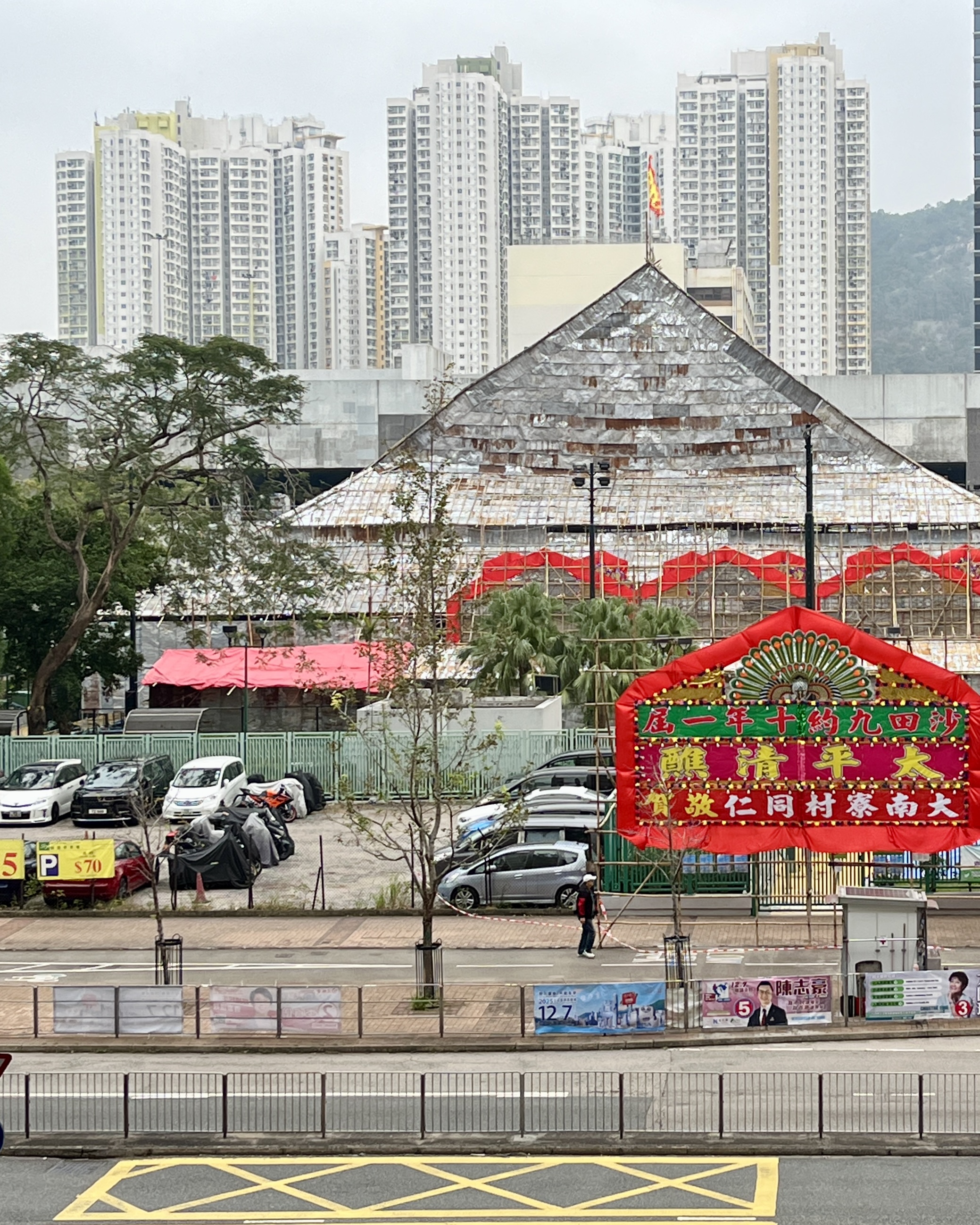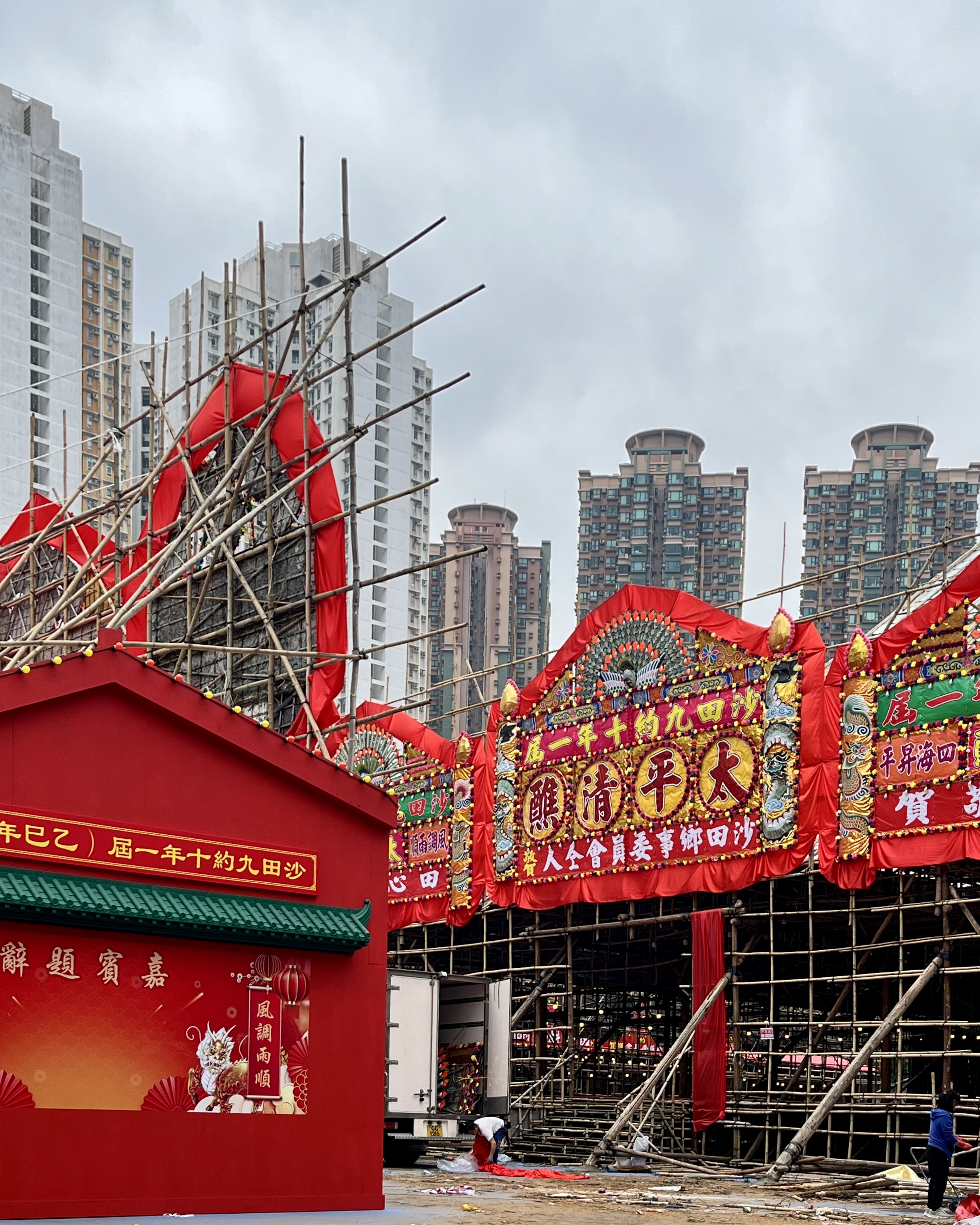 在沙田牛皮沙村遊樂場,一個大型醮棚正在逐漸成形,為十年一度的沙田九約太平清醮作準備——在屋苑高樓環繞之下,你可知道牛皮沙村在哪裡?這樣的傳統習俗,又可會喚起人們對沙田過往的村落記憶?