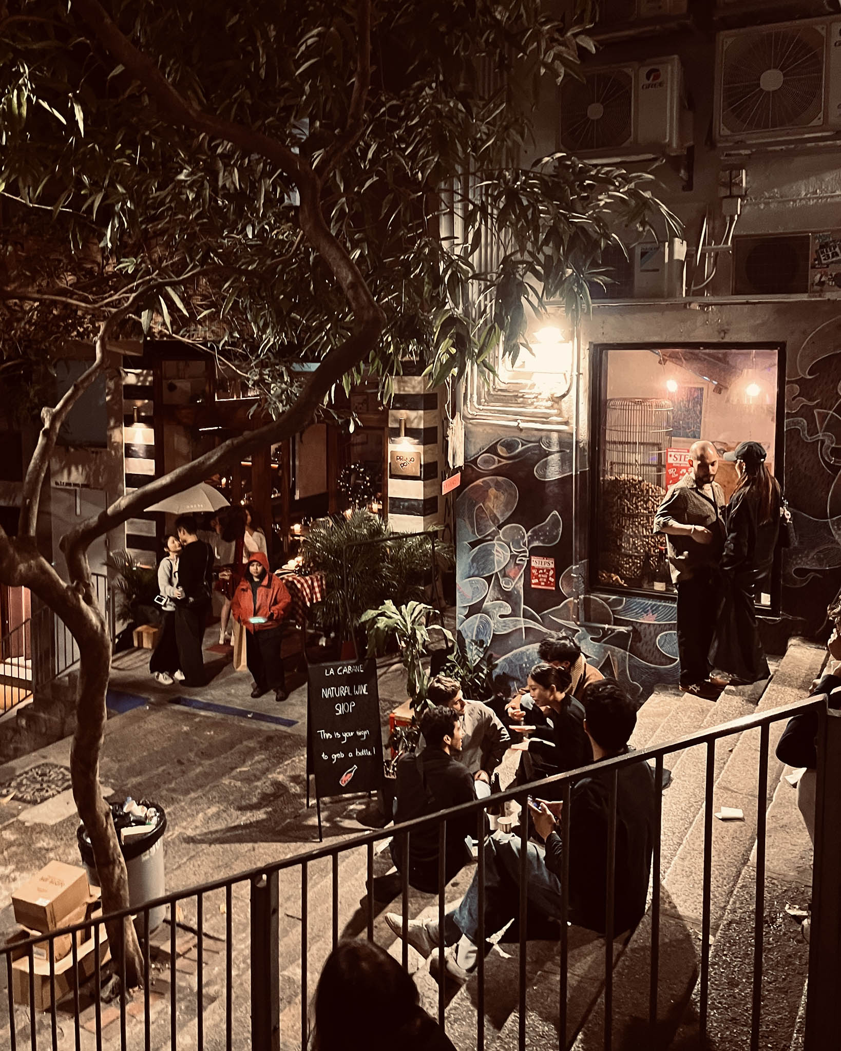 在空間有限的情況下,不同場地都會靈活運用空間,營造各自的特色氛圍——「CODA」店內的大量黑膠唱片,放在入口旁邊的展示櫃內,也將部分珍藏掛滿牆身的陳列架上,形成一幅「黑膠牆」;在「Visage One」,雖然地舖空間無法容納太多觀眾,人們卻可以坐上閣樓,在樓上「俯瞰」表演;而在「WONTONMEEN」,人們則需要穿過地舖内的「後門」才到達數百呎的音樂空間,整個體驗就如走進一個秘密基地當中,發掘裡頭的故事......