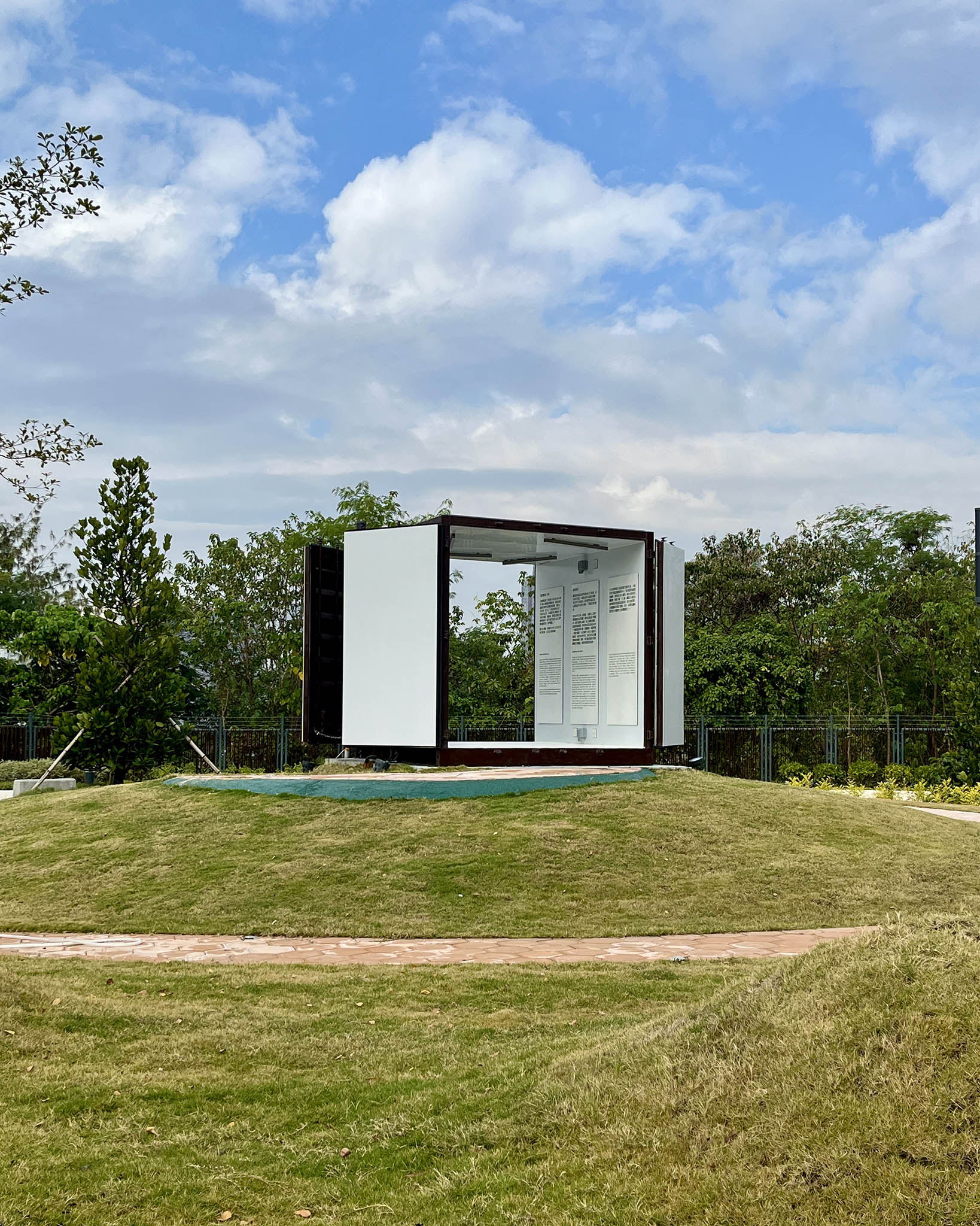 除了近海的葵裕街,公園周圍都被工業大廈所包圍,相鄰的葵喜街一帶亦設有火葬場及殮房,從公園內遠眺亦會望到荃灣華人永遠墳場——種種環境因素,都影響了葵涌公園作為休憩公共空間的感觀。