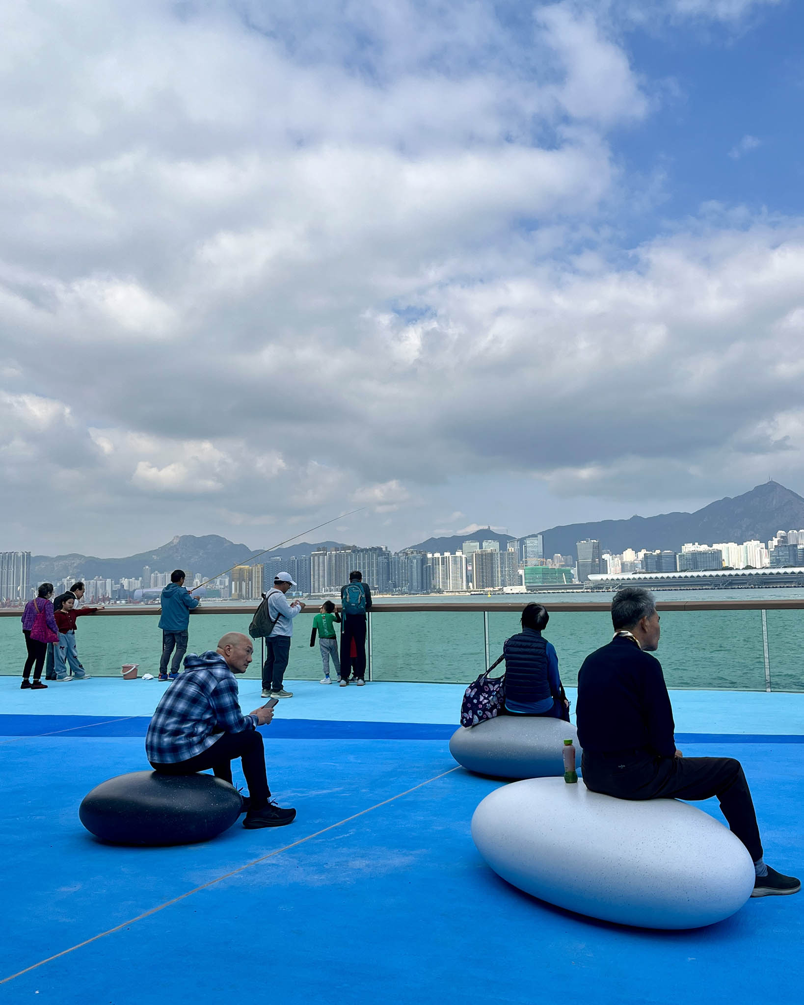年初開放的西段釣魚平台,沒有圍欄是吸引釣客的一大賣點,市民可以近距離接近海岸。而新開放的東段雖然未有相同的開放式釣魚平台,但在岸邊欄杆的不同角落也見有不少釣客,當有魚上釣時更引來圍觀。加上板道有瓦遮頭,釣客無懼打風落雨,都可以享受釣魚樂趣。