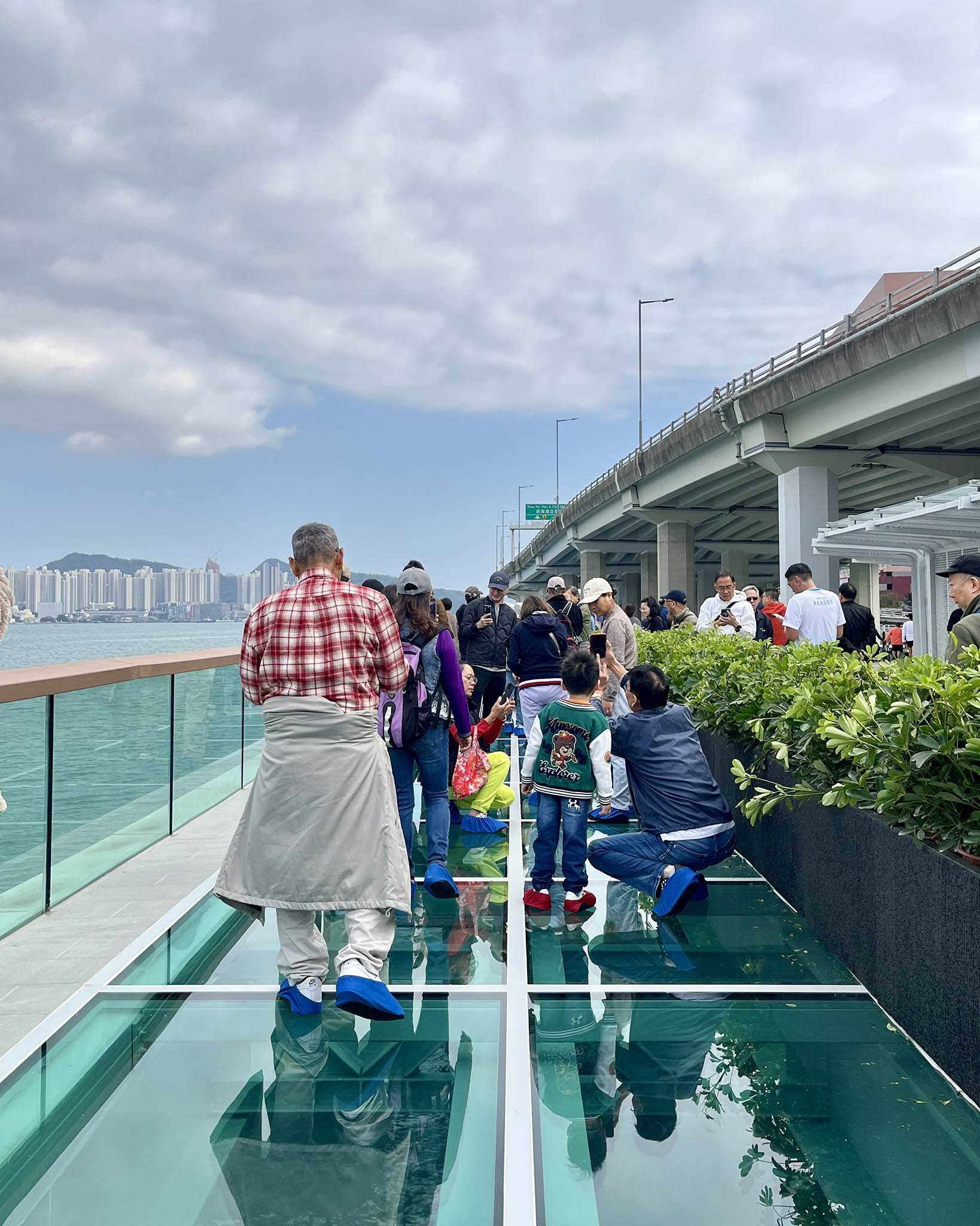 開幕日有不少市民興奮地在觀景台打卡。有人覺得觀景台過短,人群擁擠,難以悠然欣賞景色,而且需要穿脫鞋套頗為麻煩,更有人直言「下面又冇魚,有咩好睇?」不過也有人認為玻璃觀景台的最大優點是免費(其他觀光景點的玻璃橋通常需要付費),能在香港的公共空間享用這種獨特的設施,已是難得。