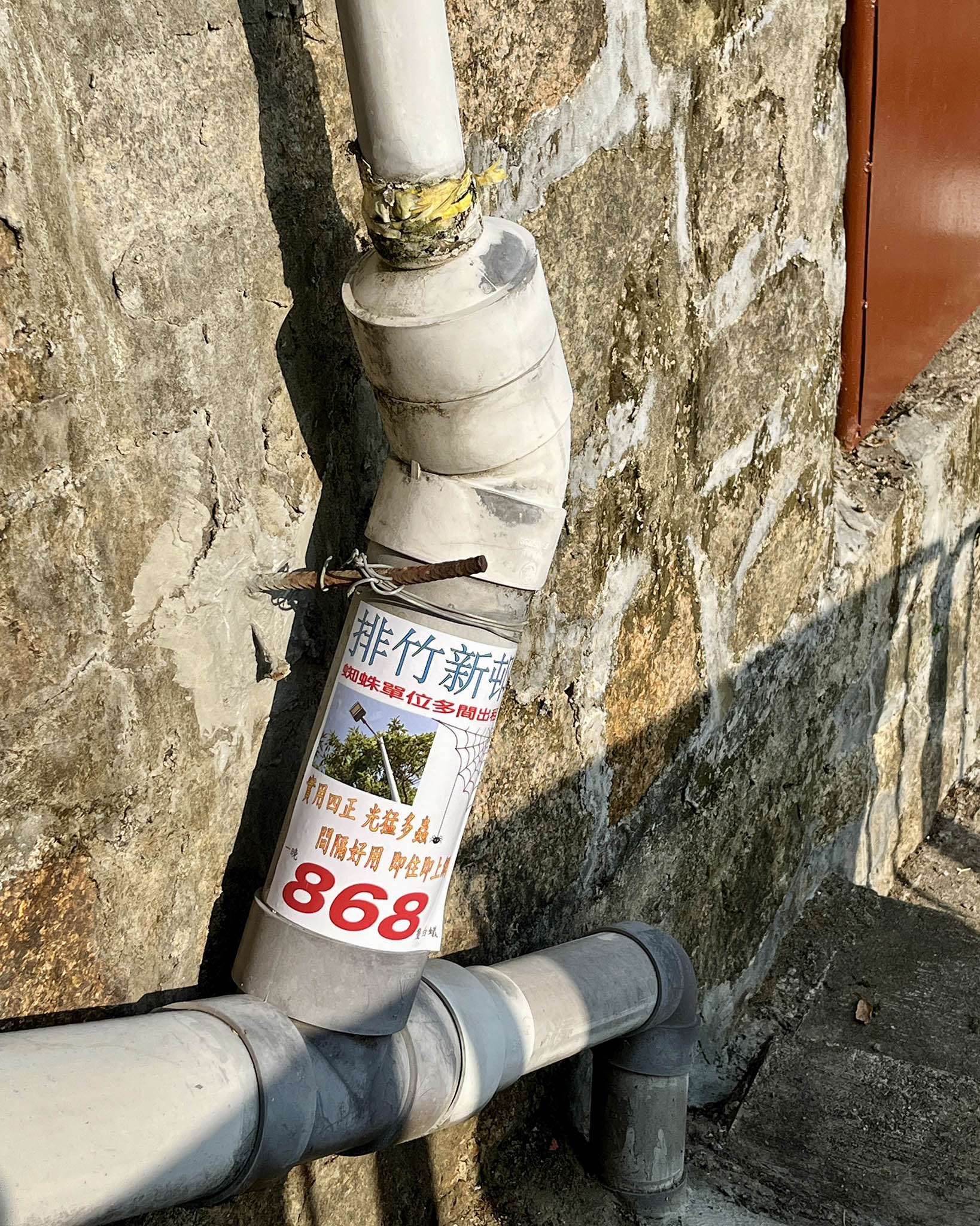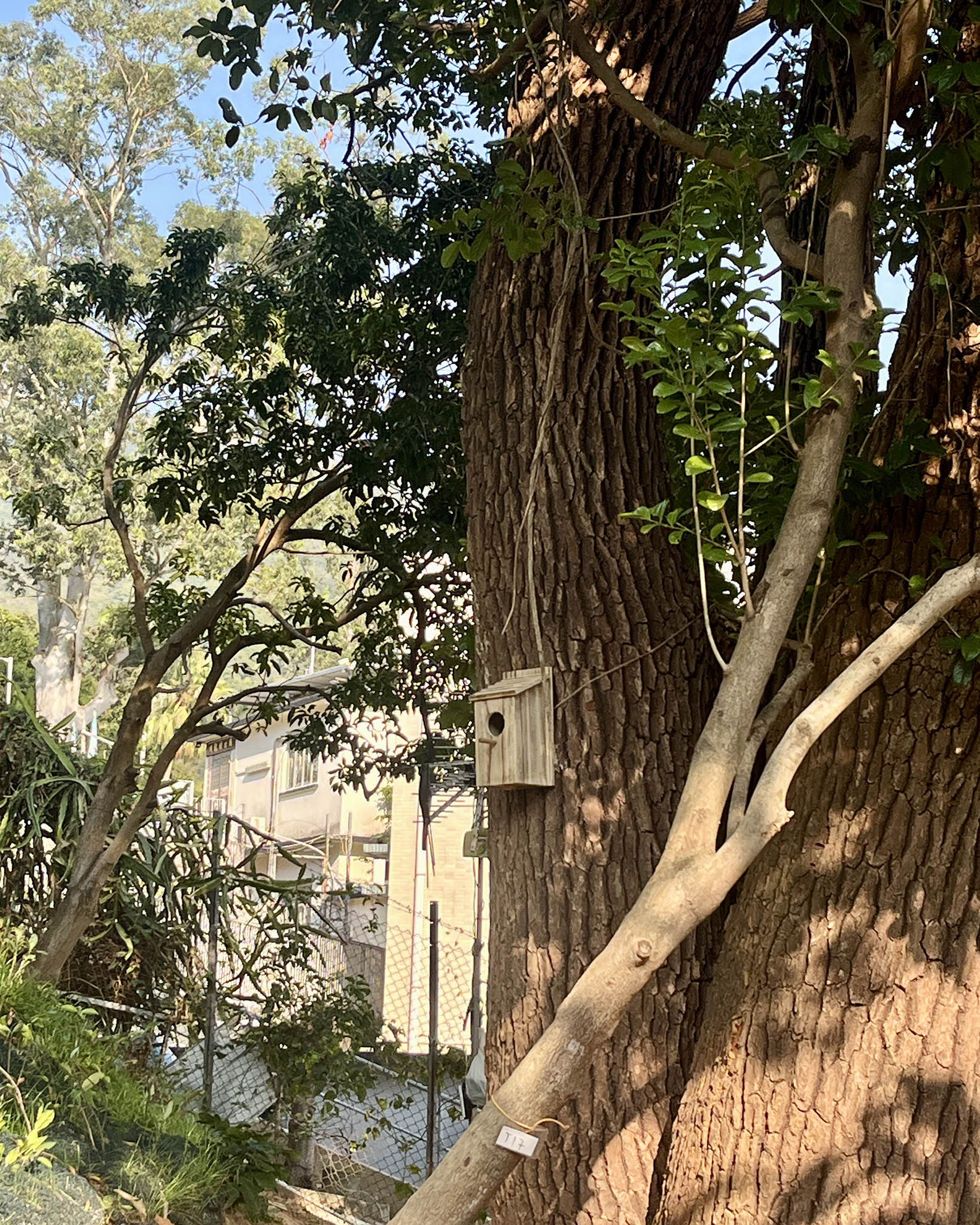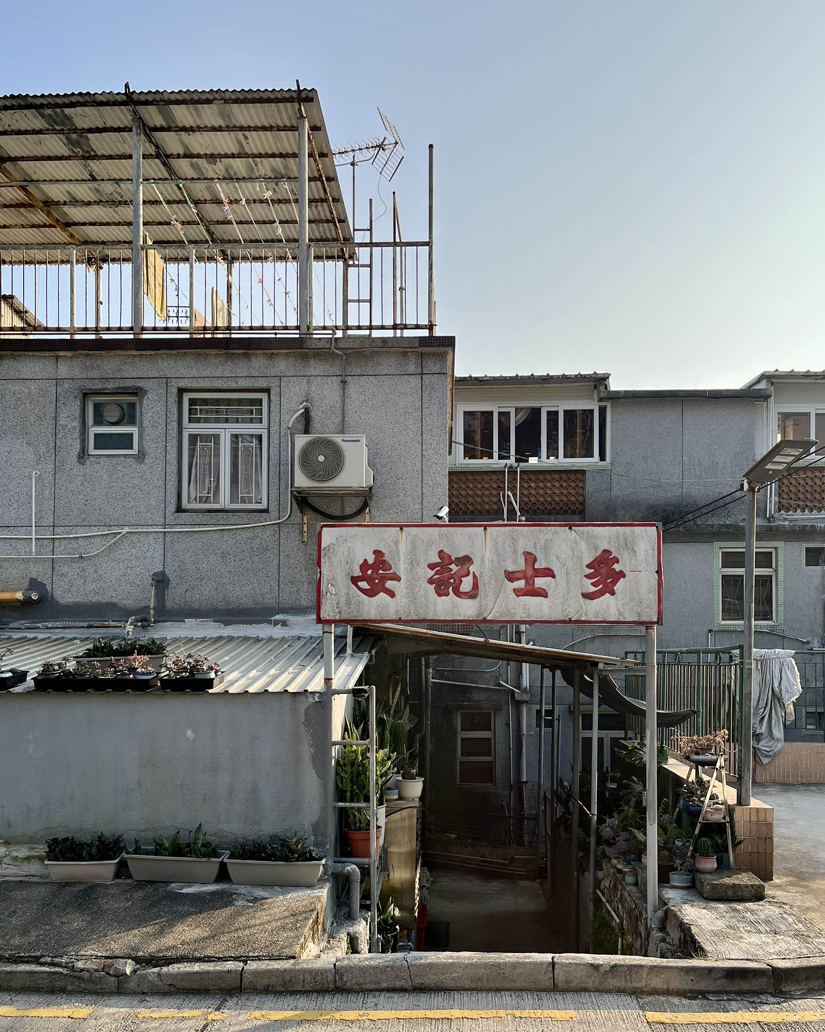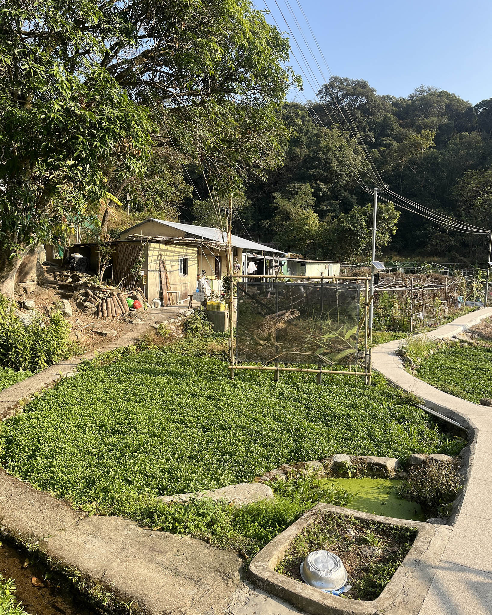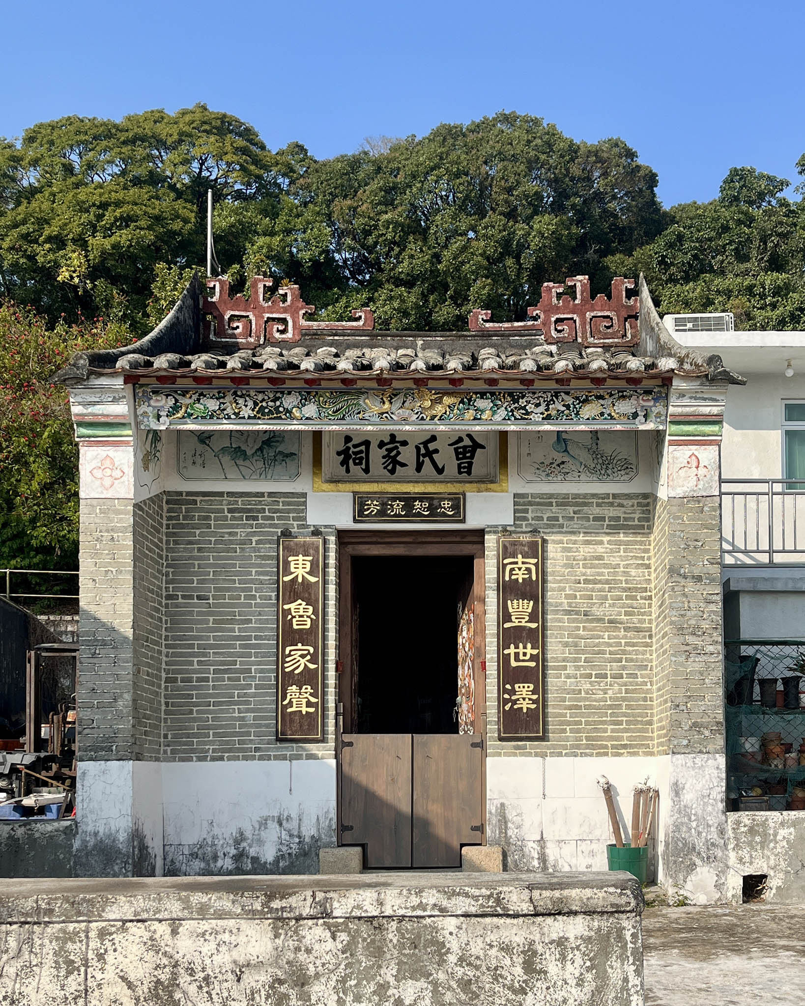 經過天主堂後,向右邊看會發現「半間屋」,原是以前的腐竹廠,雖失去了一半的屋體,但依然能見到明顯的磚牆和瓦片,周圍又有鮮花簇擁,反而令小屋像一個候車站。而雜草群生、被藤蔓纏繞的露台、牆壁斑駁的小屋,原來以前是幼稚園。