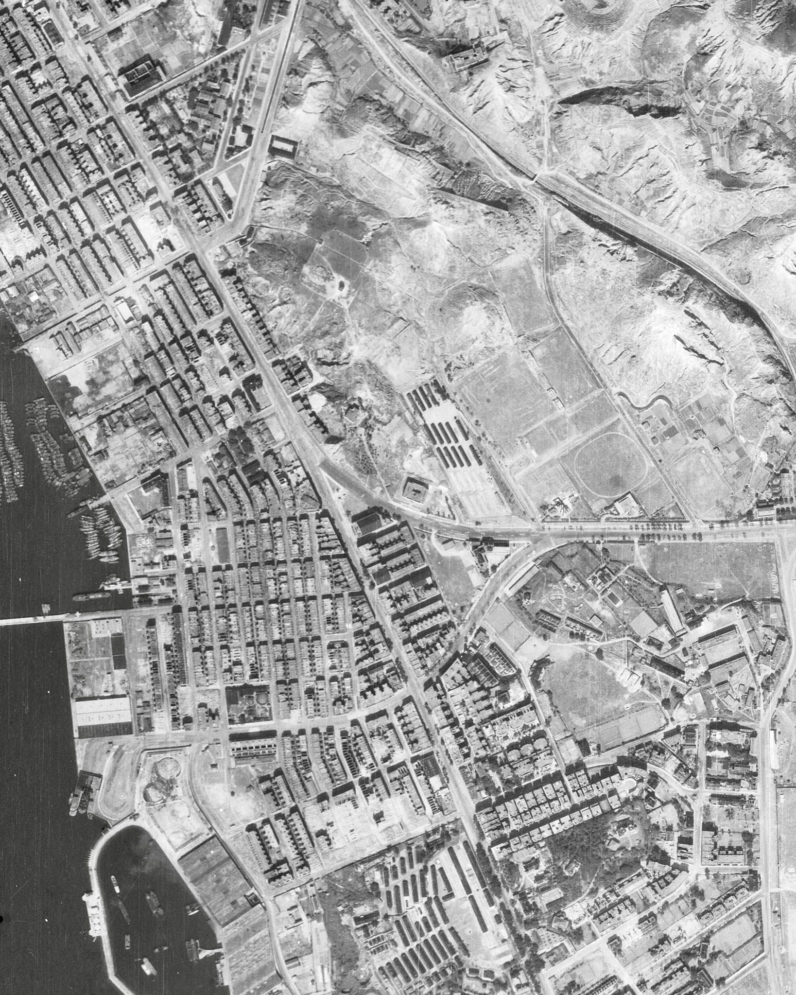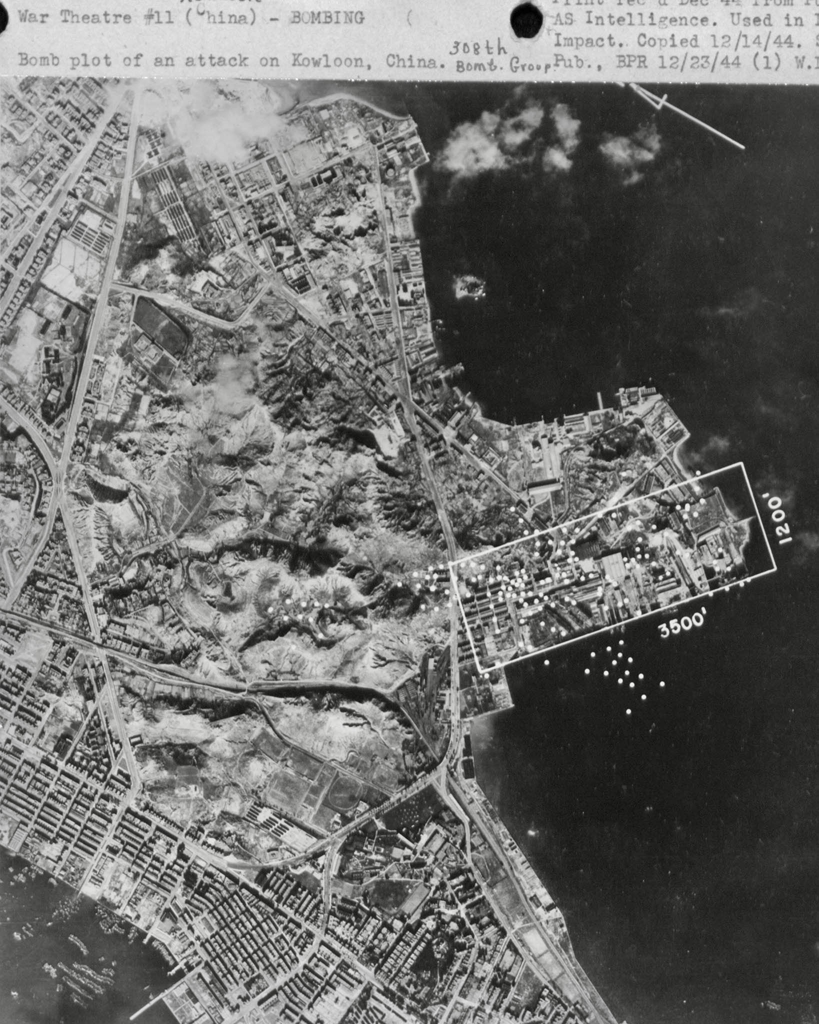 回到上世紀40年代,日佔時期的香港,留下了不少由日軍與盟軍的航拍紀錄,讓人得睹戰雲密佈下的香港城市面貌。當時的香港是日軍後勤基地,因此成為盟軍發動空襲的主要目標。航拍仍是為了偵測地形,令空襲範圍更準確,對準轟炸敵方的重要據點,避開民居與戰俘營,情報人員亦會因應航拍照片來更新地圖。