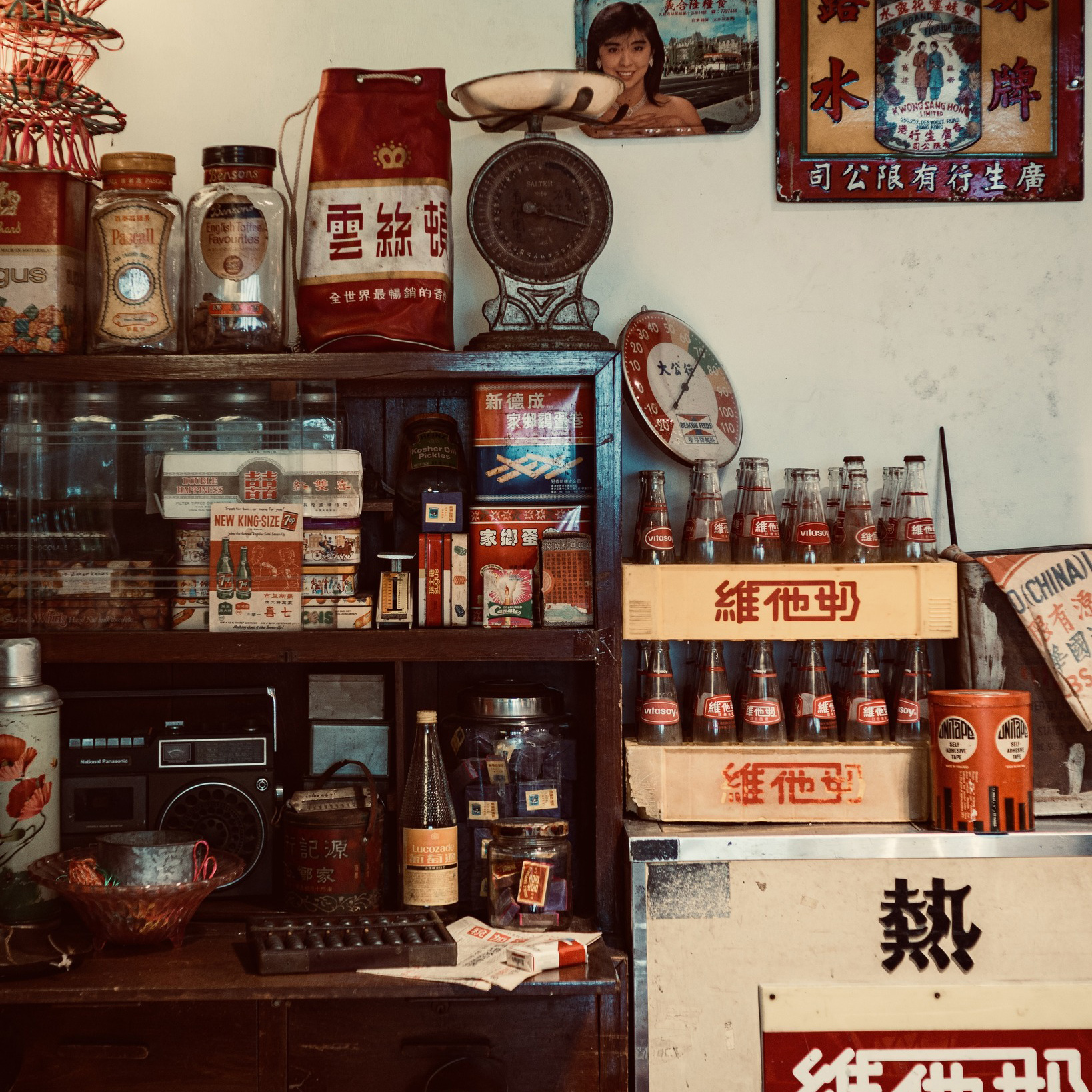不同顏色的豬仔錢罌、絕版的高達模型、明星親筆簽名的海報或一部菲林相機,現在看來是舊物或隨著復古熱潮「再復興」的東西,會否曾是你兒時所夢寐以求的寶物?隱身在中環街市內的懷舊玩物店「雅俗共想」,檔口昔日曾是街市內一分為二的家禽檔,保存著建築物原有的水磨石牆身,牆上現貼滿張國榮和劉德華等八九十年代天王巨星的照片和海報,也有香港舊地圖、六十年代生產的時鐘等充滿年代感的舊物.....