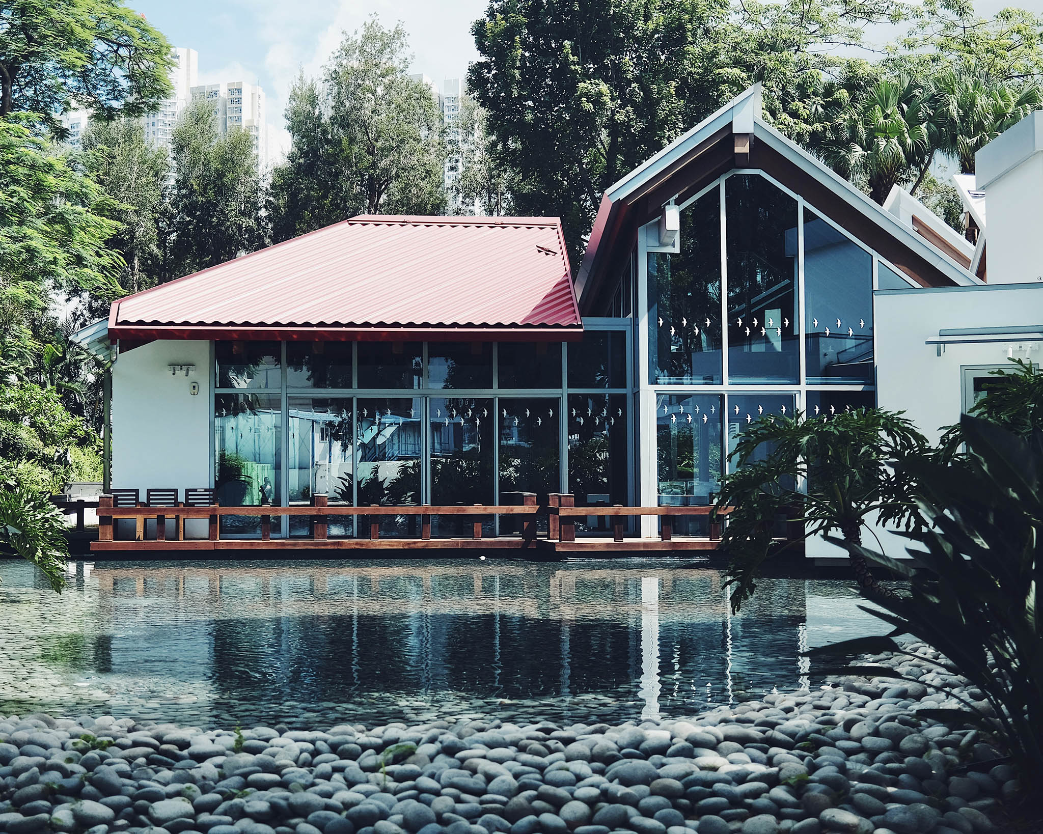 位於赤柱聖士提反灣的香港青年協會赤柱戶外訓練營,背山面海,是玩水上活動的好地方。營地早於1974年已建成,2023年由 @architecture_commons 重建。為了融入大自然環境,建築物採用傾斜外型,以避開旁邊的橡樹,而橡樹同時又為建築提供遮蔭,灰色穿孔金屬外牆則能調節溫度,加上深淺交錯的碧葉紋理,也和大自然環境互相呼應。