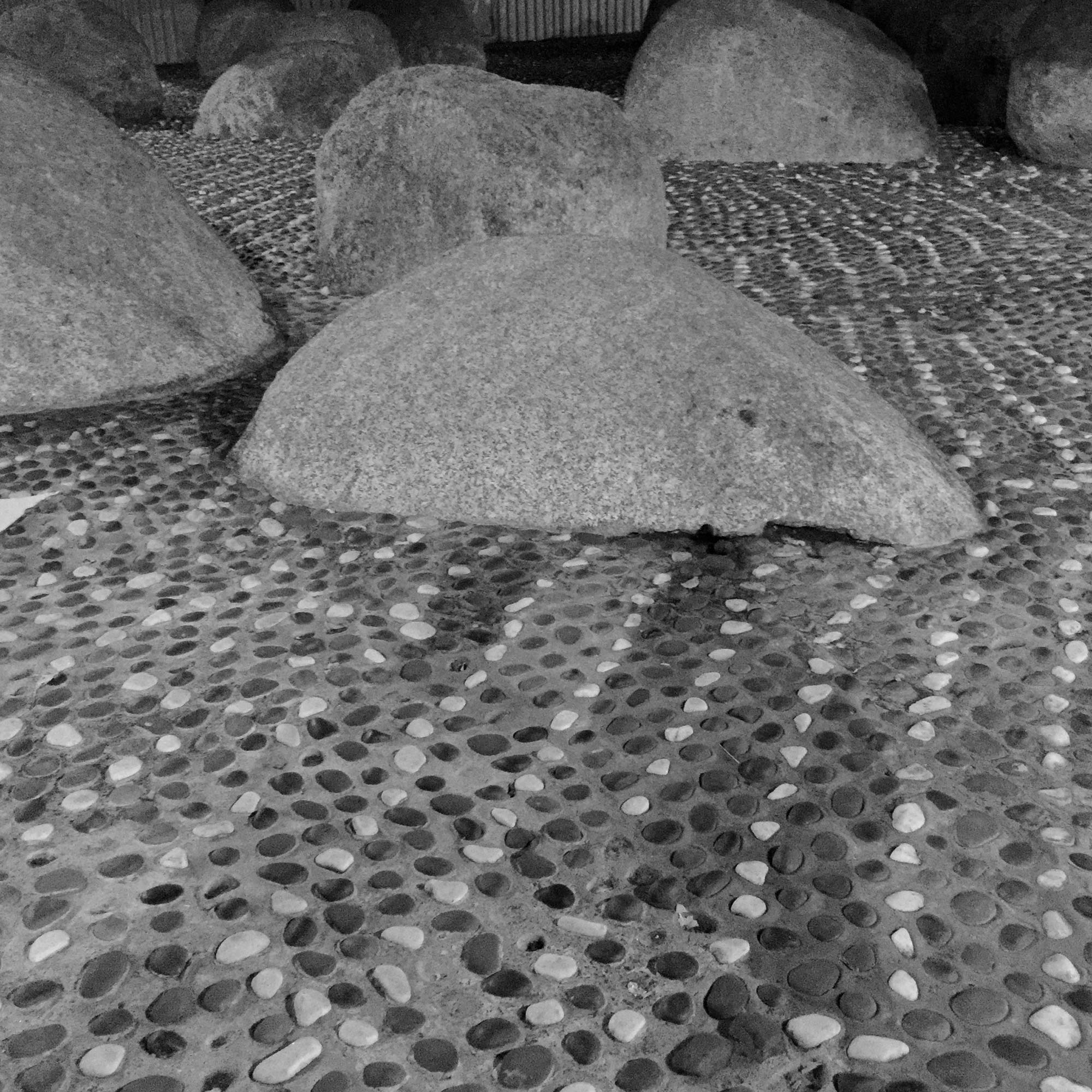 在高速公路交匯的地方,有幾片沒有實際作用的空地。這幾片空地鋪滿了大小不同的石春,在繁忙馬路之間營造一片休憩用地。細看,其實充滿禪意。