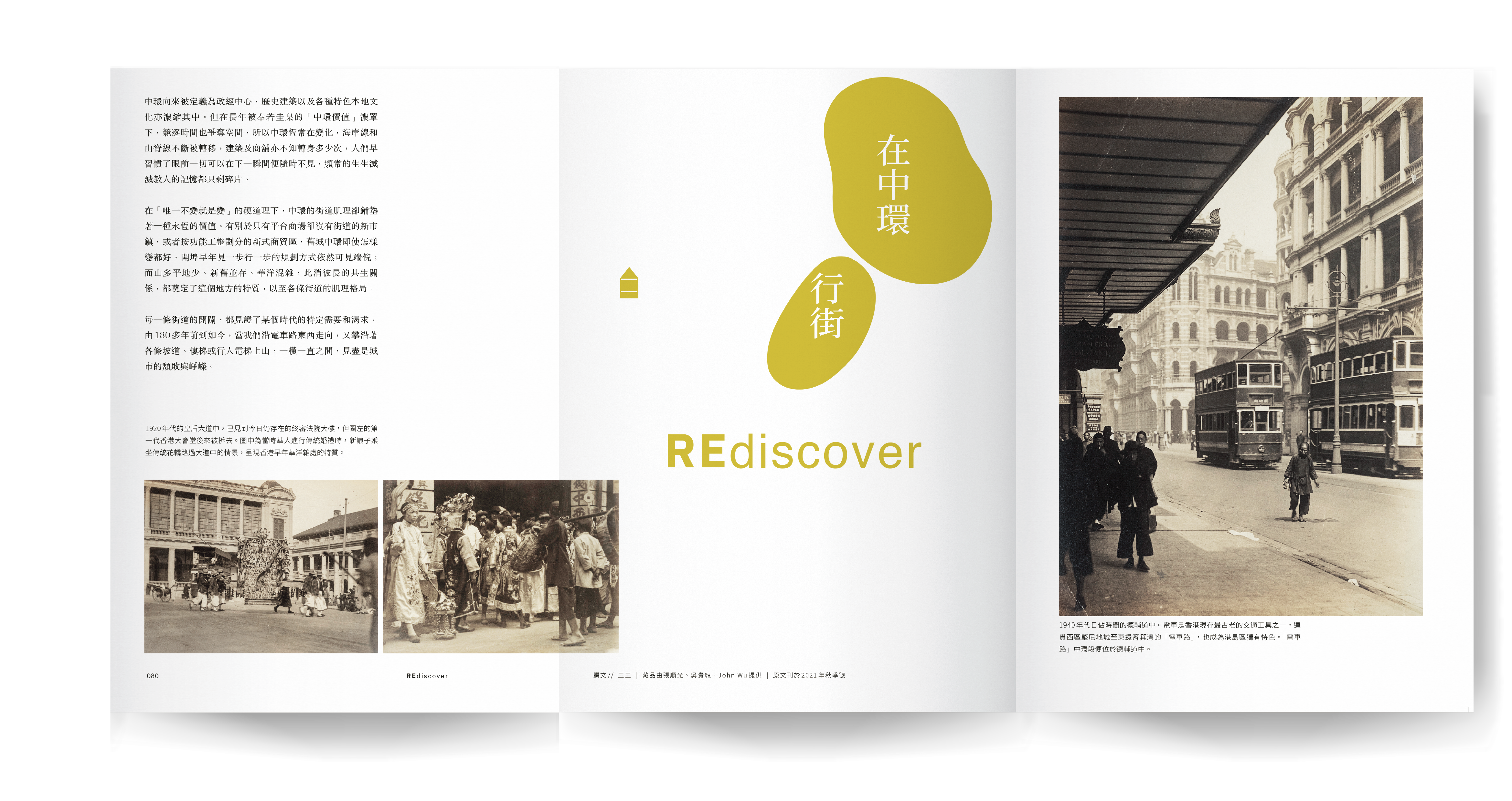中環即使怎樣改變都好,開埠早年的規劃方式至今依然可見端倪;而山多平地少、新舊並存、華洋混雜,此消彼長的共生關係,都奠定了這個地方的特質,以至各條街道的肌理格局。由180年前到如今,沿電車路東西走向的德輔道,以至攀沿著各條坡道、樓梯或行人電梯上山的平台斜路,一橫一直之間,見盡是城市的頹敗與崢嶸。