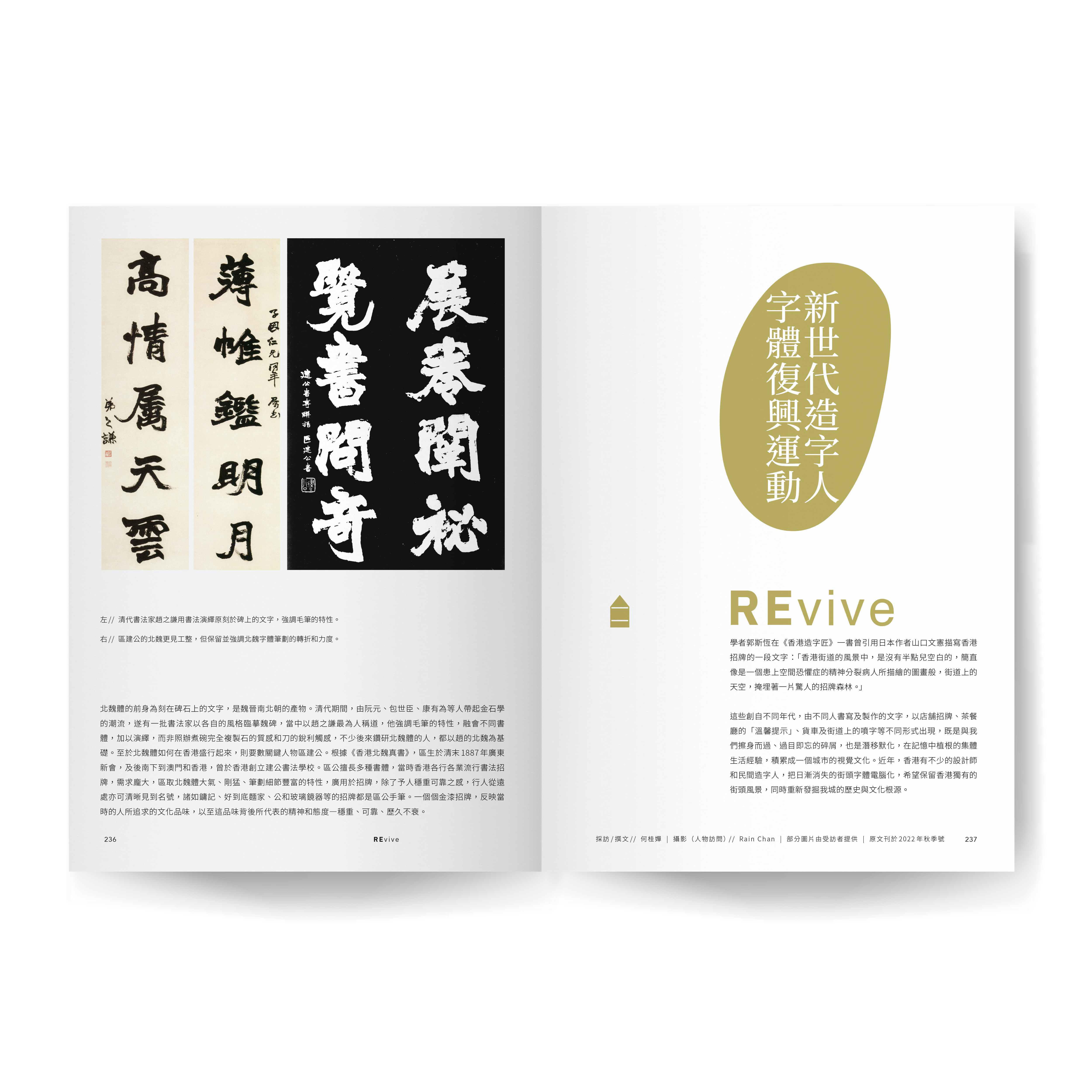 近年有不少新生代香港設計師和民間造字人,重新發掘北魏體、李漢楷體和監獄體等街頭常見字體的歷史淵源,同時把日漸消失的字體重新設計或數碼化,希望保留香港獨有的街頭風景,同時重新連結我城的文化根源。